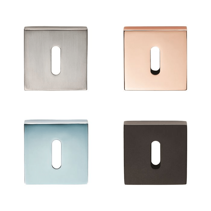 Lock escutcheon on a Concealed Fix 2 part Square Rose. Compliments the Carlisle Brass lever range on a square rose. Suitable for domestic and commercial use.